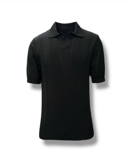 Acest tricou cu guler, de inspirație vintage, emană un aer retro și relaxat. Designul său îi conferă un aspect purtat, autentic. Croiala este clasică, cu guler și nasturi în partea din față, specifică tricourilor polo. Este o piesă vestimentară versatilă, potrivită pentru ținute casual și confortabile.